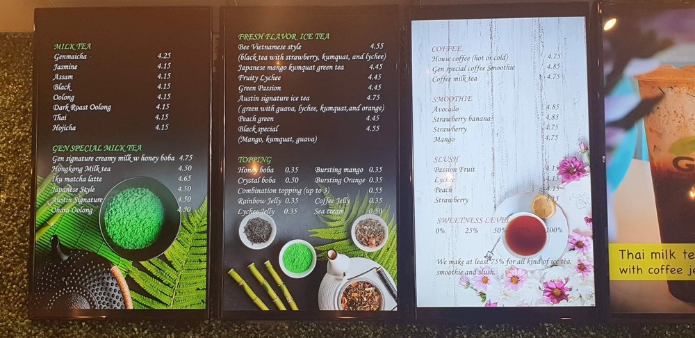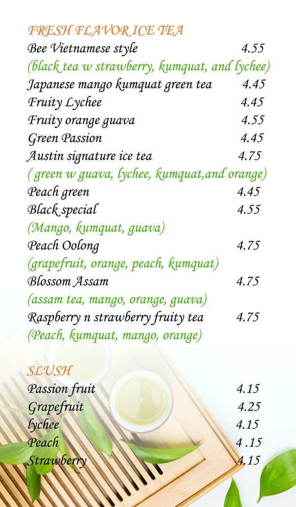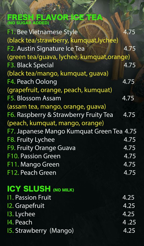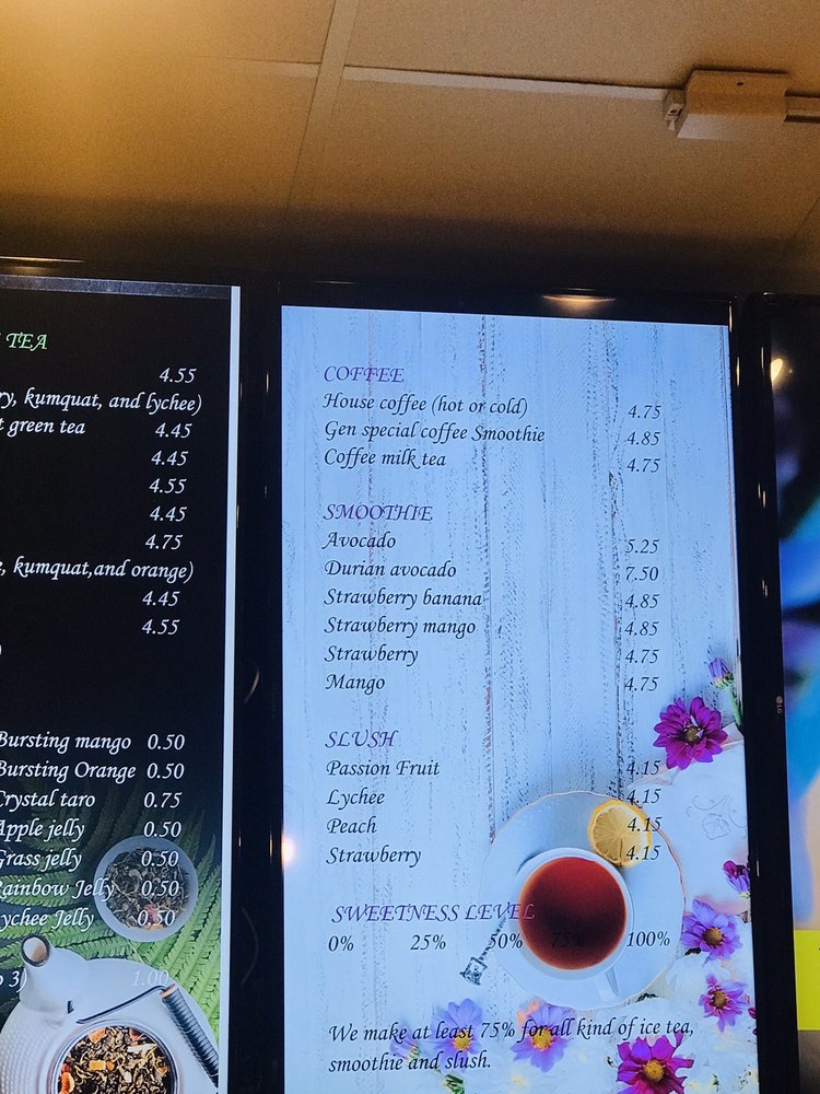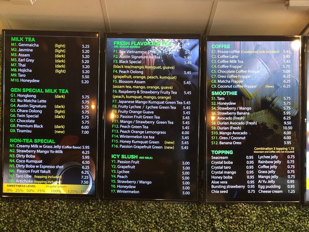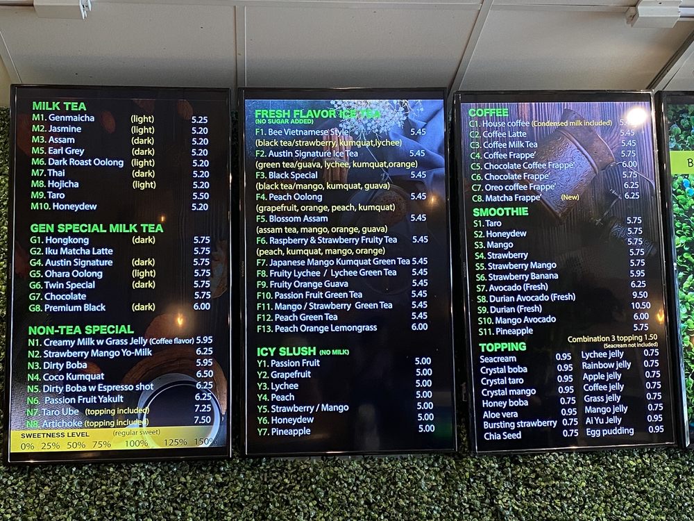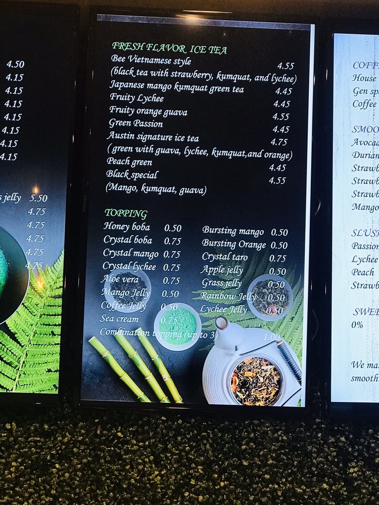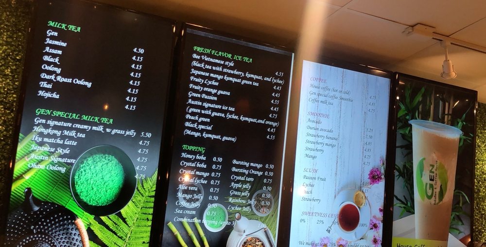 Introducing the menu at Gen bobabee & coffee house, located in Austin, TX, offers a diverse range of bubble tea and coffee options. Their Iced Teas include unique flavors like Bee Vietnamese Style and Austin Signature, while their Icy Slush drinks like Passion Fruit and Peach are refreshing choices. Coffee lovers can enjoy Hot House Coffee and Ice House Coffee, among others. Customers praise the high-quality teas and drinks, friendly service, and cozy ambiance. Reviews highlight the adventurous Japanese flavors, delicious boba teas, and extensive drink menu. With options for customization in sweetness and toppings, Gen bobabee & coffee house is a must-visit spot for tea and boba enthusiasts looking for a unique and refreshing experience.